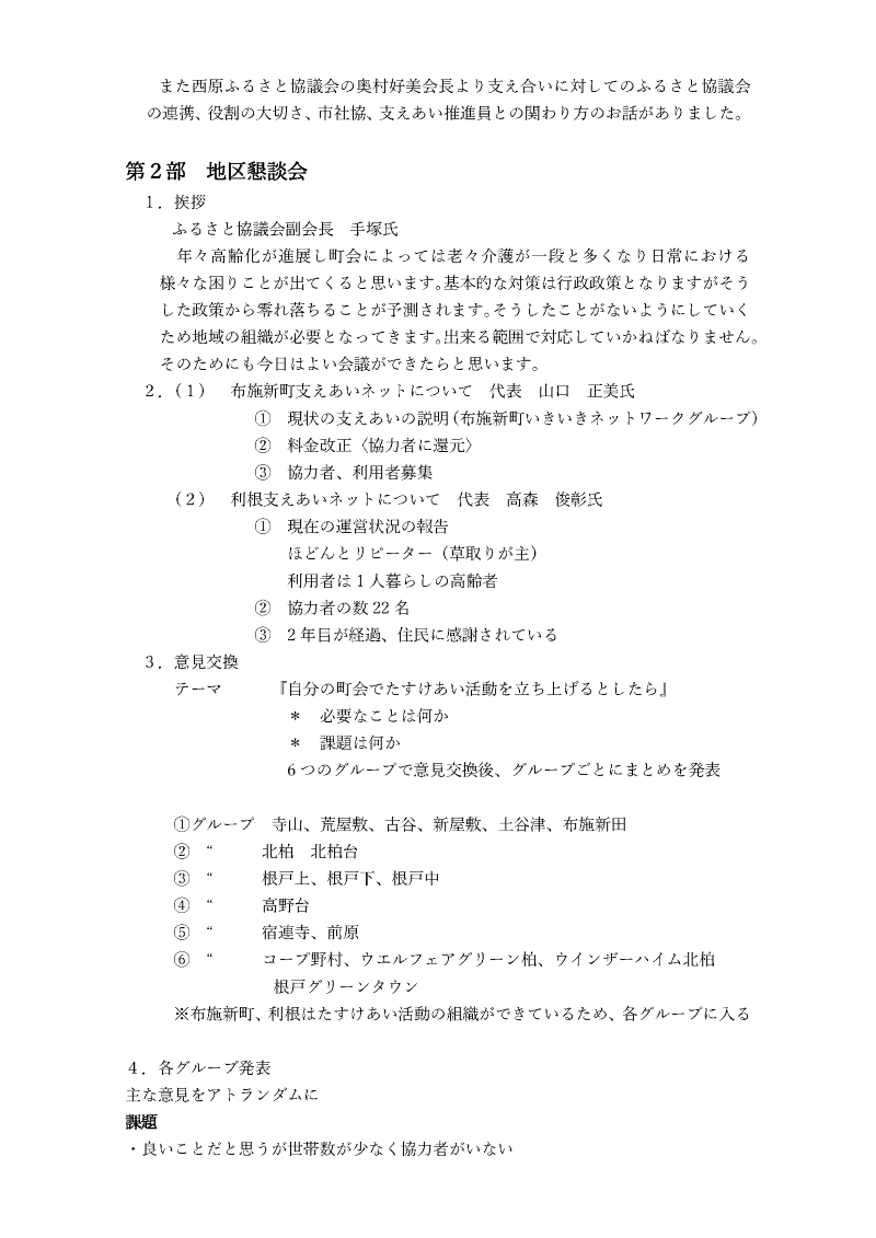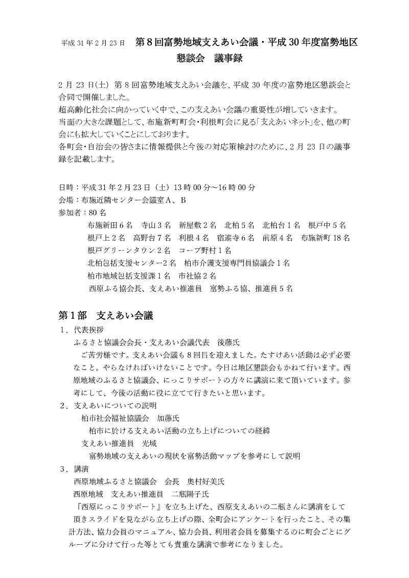 富勢においては、当協議会の会長を代表として、支えあい推進員(光城京子さん)が、