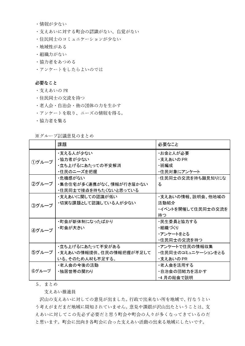 状況に応じたメンバーと共に、支えあい活動についての話し合いを行っています。