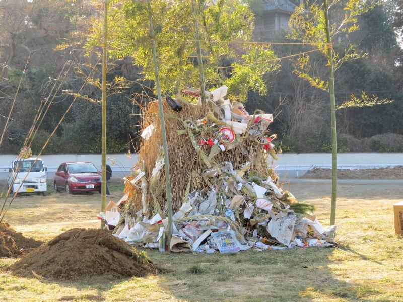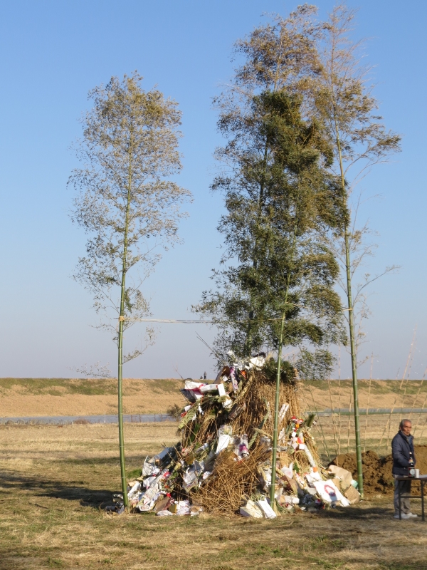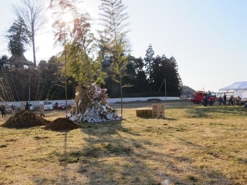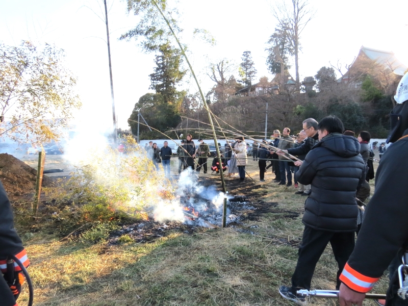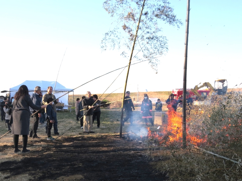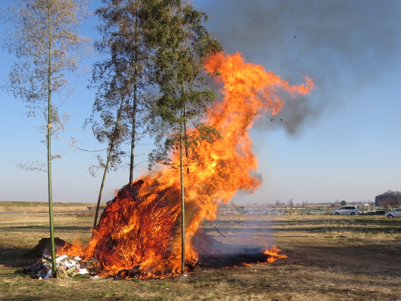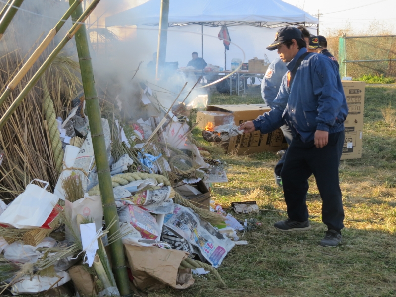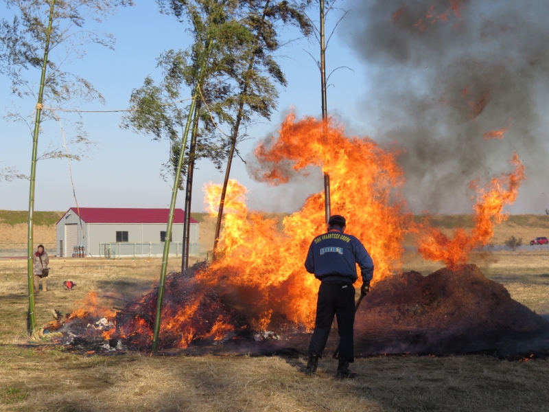 あわんとり 平成31年1月20日(日)平成31年1月20日(日) 15時から、あわんとりが行われました。 年に1回、正月明けの地域行事で、布施連合町会主管、柏市消防団第一方面隊第6・7・8分団の共催で行われました。 藤原町会長の話しによると「あわんとり」の呼び方は、この地方に伝わる呼びかたで「粟」「鳥」が変化したもので、粟などの穀物を荒らす鳥などから守り、五穀豊穣・無病息災・家内安全を願ったものとのことです。 正月飾りなどを燃やして、祭神様を空に送り出し、そして残り火で焼いた餅を食べ、無病息災を願いました。 正月飾りやお寺・神社のお札など、どなたでもそれぞれの家庭から持ち込むことができます。